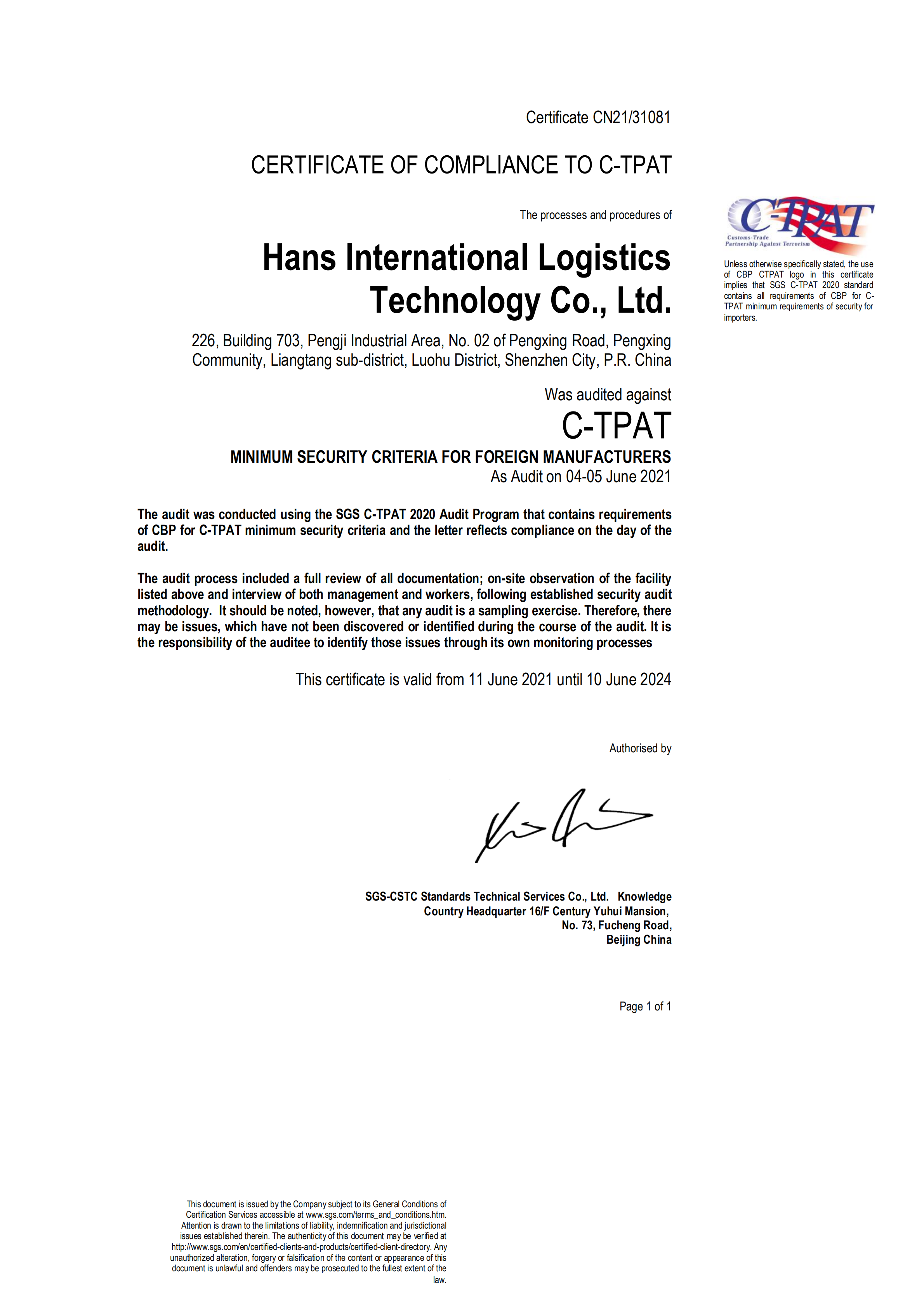 祝賀深圳市良泰物流有限公司、深圳欣欣達物流有限公司、順利通過ITS-GSV審核,同時也祝賀順欣達國際物流網絡技術(深圳)有限公司順利通過SGS-C-TPAT審核,為了保證客戶在規定的時間內拿到合格證書,在疫情嚴重的鹽田區域創思維集團派遣多位資深反恐專家及老師同步進行輔導,培訓,確保20天內滿足客戶需求!